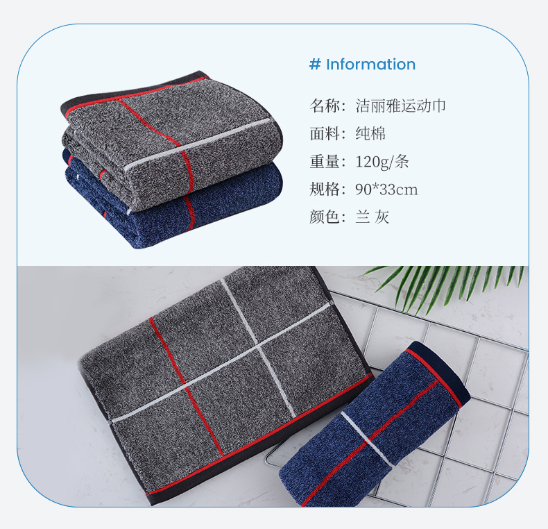 洁丽雅纯棉运动巾 健身跑步擦汗巾男士跑步巾 全棉深色加长毛巾